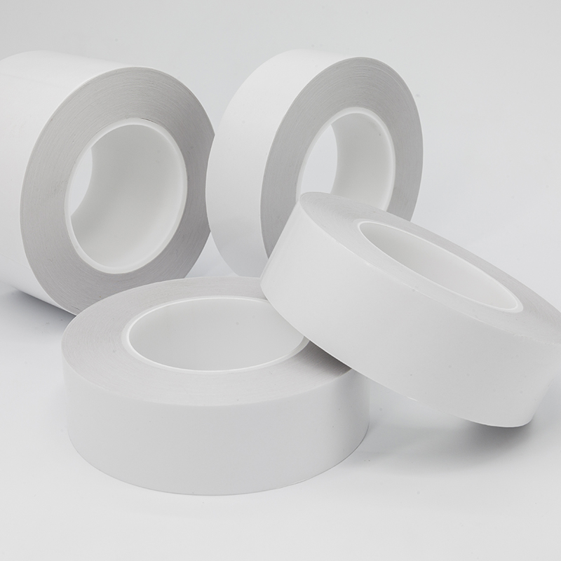 Fuyin tissue double side tape is a product basing on tissue, double side coated with high property pressure sensitive glue, compound single silicon or double silicon release material. Have good bounce-proof, warping, hot resistance, high temp resistance property. Stronger adhesion and holding power, have excellent adhesion to many substrate. Easy to peel, clean use. To uneven surface and dirty surface, have excellent adhesion of chemical fiber and wood cotton cloth.
